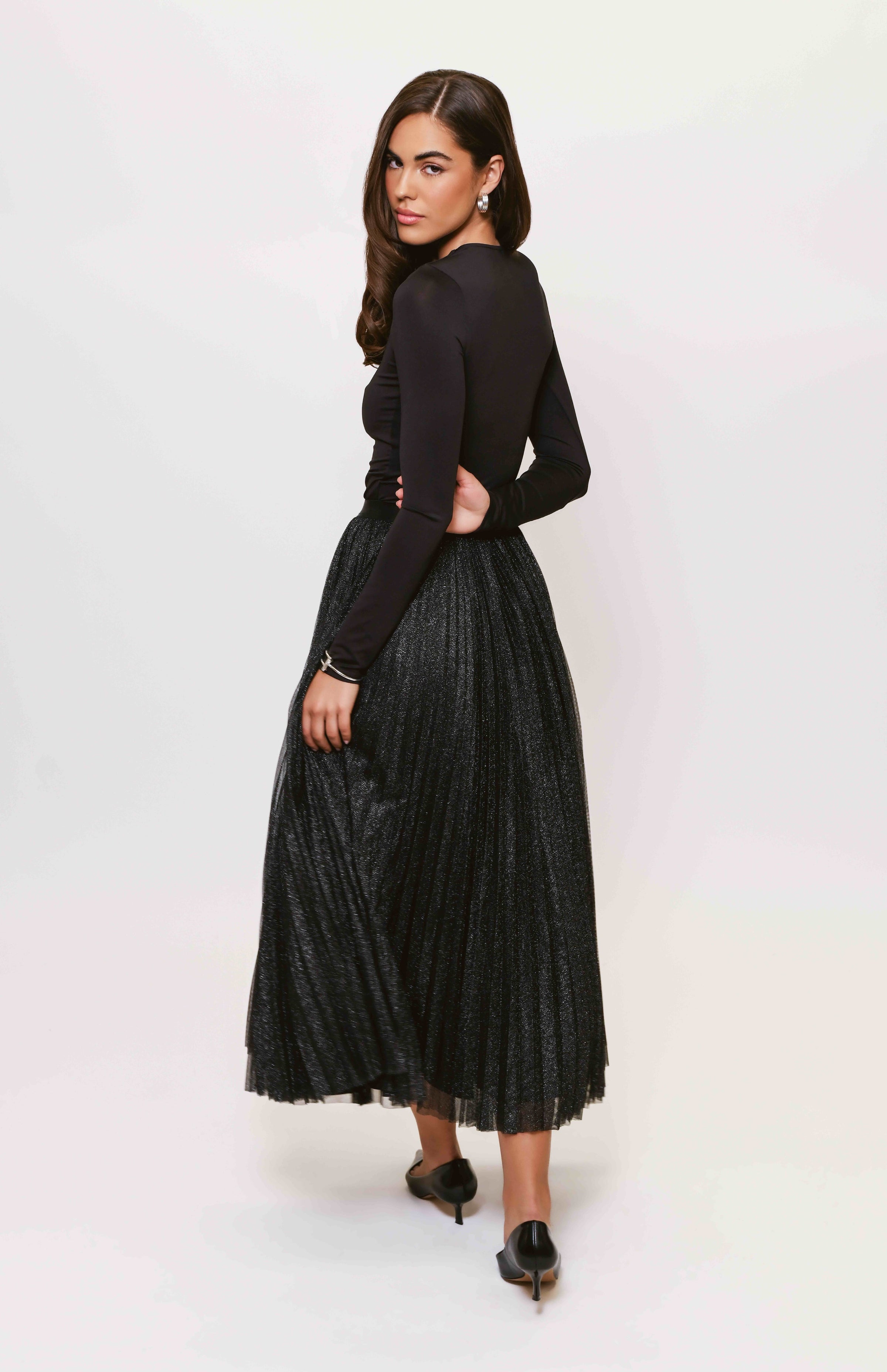 - Pleated full skirt