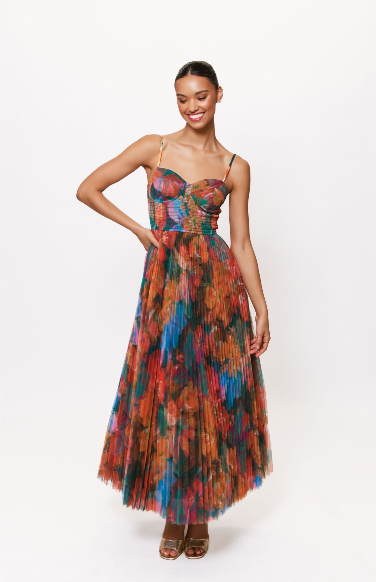 - bustier smocked waist tulle maxi dress