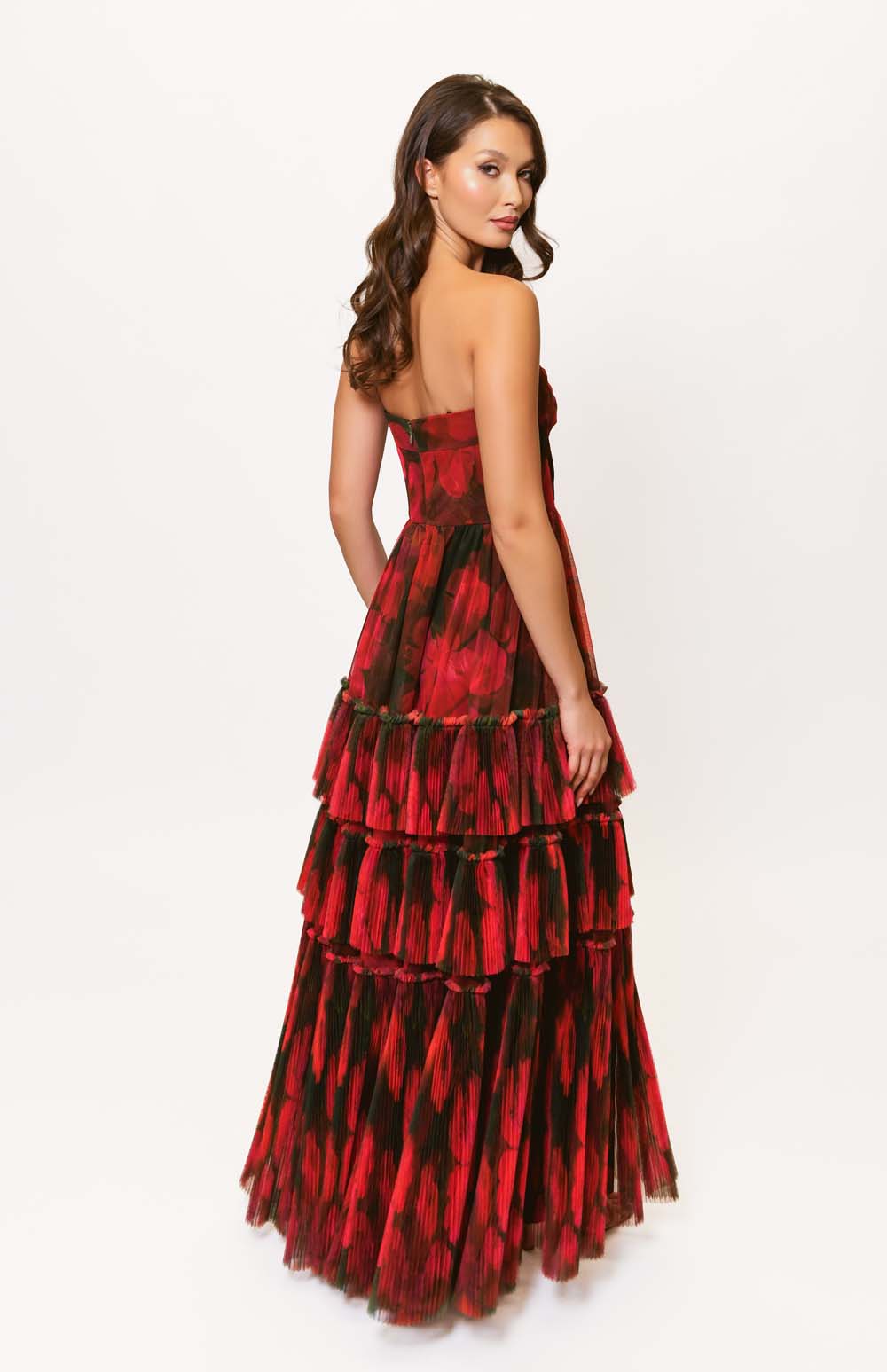 - strapless tiered tulle maxi dress