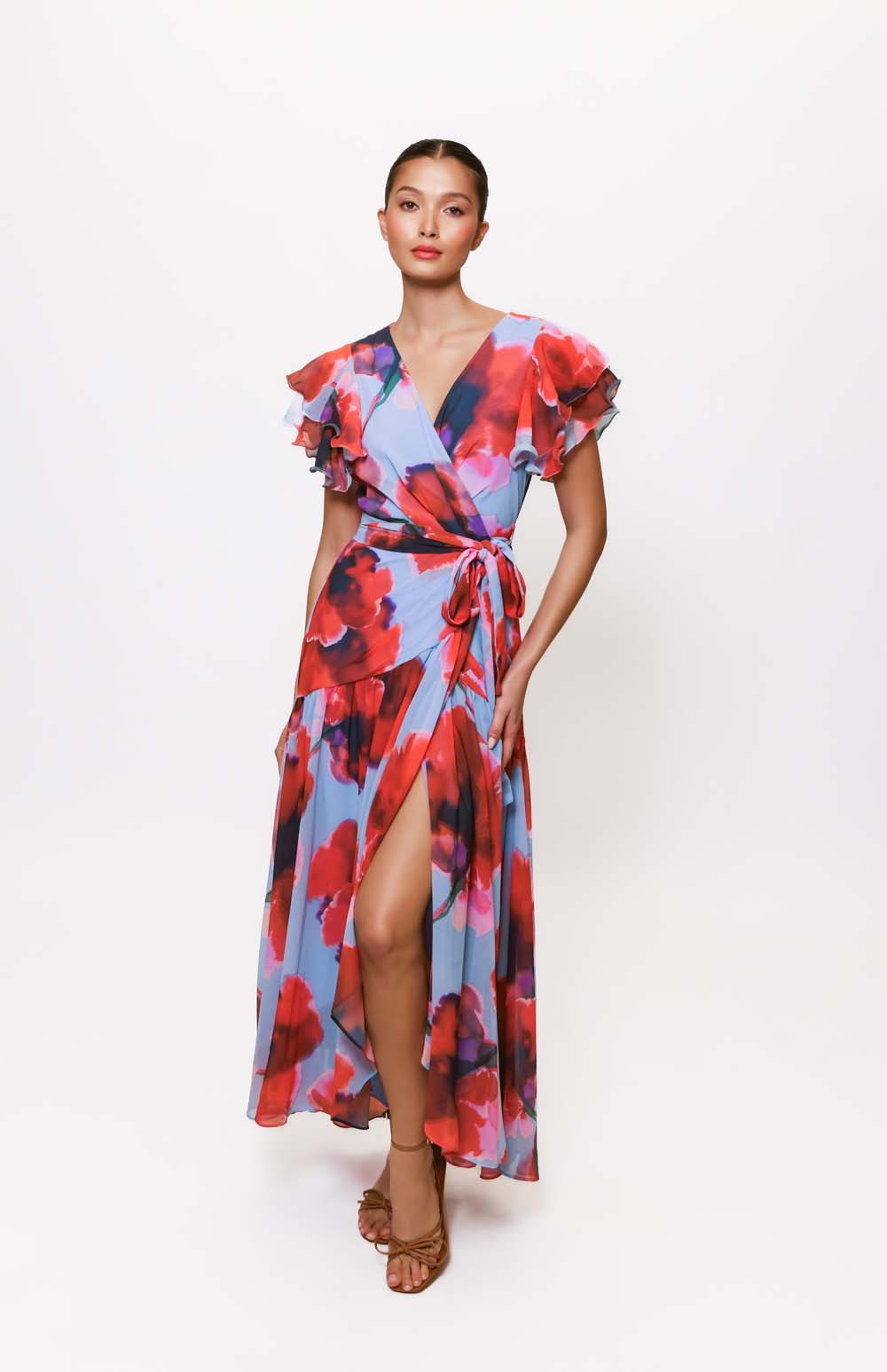 - flutter sleeve maxi wrap dress
